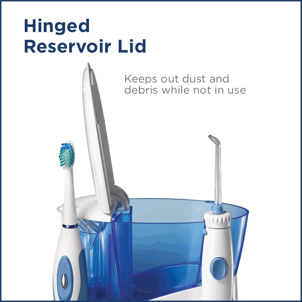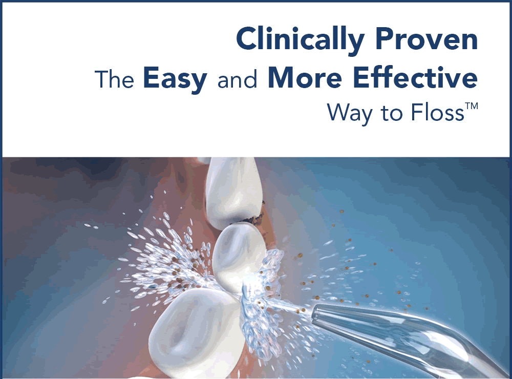 It’s basically a device that shoots out water at your teeth to help remove plaque faster and easier and it only takes a minute a day.